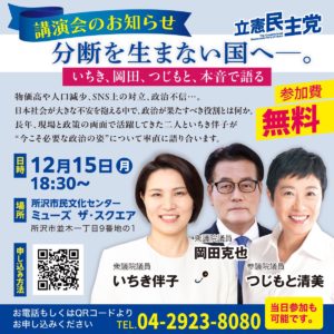 【講演会のお知らせ】『分断を生まない国へーいちき、岡田、つじもと、本音で語る』